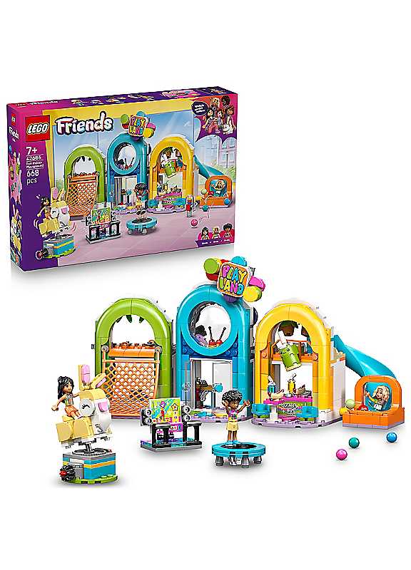 Let imaginations run free as little ones explore this LEGO Friends Fun Indoor Playground (42686) toy for 7+ year old girls and boys. The action-packed set includes 3 mini dolls and lots of accessories with obstacles, challenges and rides to enjoy. Kids won't want to leave this soft play centre as they enjoy hours of open-ended role play and create adventures for LEGO Friends Liann, Nova and Sonia mini dolls. Find fun moments around every corner, including a climbing net, obstacles, a roundabout, a ball pit, a toy slide, a bunny ride and a snack bar. The fun keeps on coming with even more details to promote creativity including a dance machine, a trampoline, hot dogs, slushies, a gumball machine and cash registers. This building set makes a fun birthday gift for 7+ year old girls and boys who love pretend play and using their imagination to create stories with their toys. The LEGO Builder app gives kids an intuitive building adventure where they can zoom in and rotate sets using 3D building instructions, save sets and track progress.Age suitability: 3+ yearsBUILD AN INDOOR PLAYGROUND - Let kids' imaginations roam wild as they explore this LEGO Friends Fun Indoor Playground toy for 7+ year old girls & boys, which includes 3 mini dollsLOTS OF PLAYFUL SURPRISES - Find fun moments around every corner, including a climbing net, obstacles, a carousel ride, a ball pit, a slide, a bunny ride & a snack bar for the mini dolls3 LEGO FRIENDS MINI DOLLS - Liann, Nova & Sonia mini dolls encourage girls & boys to create fun stories with the playground rides & included accessoriesLOTS OF ACCESSORIES - Fuel storytelling with slushies, hot dogs, a phone, a gumball machine, cash registers, & a coin, plus a side build with a dance machine, a trampoline & moreGIFT FOR 7+ YEAR OLD GIRLS & BOYS - This LEGO Friends building set provides a playful experience for adventurous kids & makes a great gift to celebrate birthdays or any other special occasion.WARNING! Choking hazard. Small parts. | indoor birthday party games, party games for preschoolers indoor, active indoor games for preschoolers, party games for 7 year olds