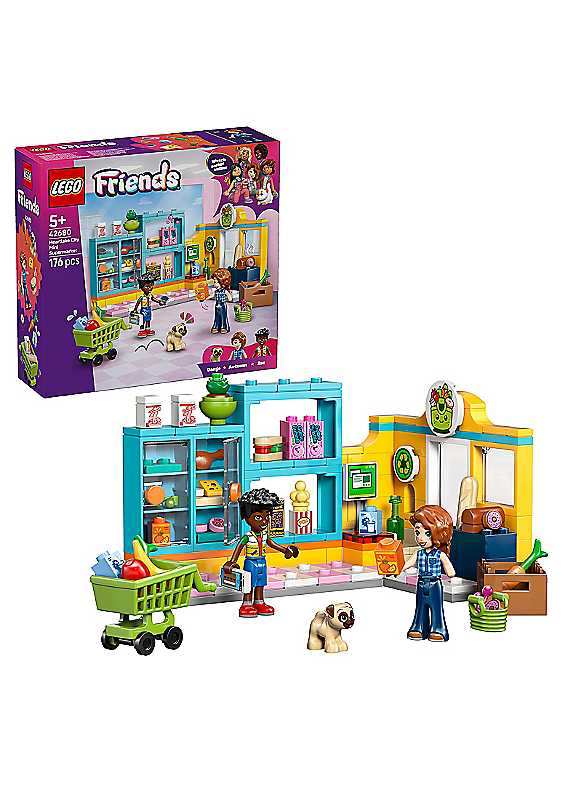 Inspire grocery shopping pretend play with the Heart lake City Mini Supermarket toy for 5+ year old girls and boys (42680). Kids can make up their own fun stories with this detailed toy shop, which includes realistic features like supermarket shelves, a shopping trolley, a basket, a recycling point and a toy cash register.This fun role-play toy comes with Autumn and Zac LEGO Friends mini dolls, a toy dog and heaps of pretend-play food for customers to buy. Discover bread, doughnuts, juice, milk, noodle boxes, bubble gum, a sandwich, an apple, a banana, strawberries, cherries, carrots, popcorn, a plant and more.This toy supermarket makes a great birthday gift for 5+ year old girls and boys who love shopping role play. With the LEGO Builder app, kids can enjoy an intuitive building adventure where they can zoom in and rotate sets using 3D building instructions, save sets and track progress.ONLINE SHOW - Discover more creative play ideas with other sets (sold separately) and the LEGO Friends: The Next Chapter online show, where kids get to know the characters of Heart lake City.Age suitability: 5+ yearsSHOP TOY FOR 5+ YEAR OLD GIRLS & BOYS - The LEGO Friends Heart lake City Mini Supermarket comes with 2 mini dolls & a pet dog figure for creative storytellingSUPERMARKET ROLE PLAY - Kids can imagine shopping or working at the supermarket with a toy shop that includes grocery shelves, a shopping cart, a basket, a recycling point & a cash register2 MINI DOLLS & AN ANIMAL FIGURE - Includes Autumn & Zac mini dolls plus a toy dog & lots of fun details to inspire imaginative playSHOPPING ACCESSORIES - Includes a plant & lots of toy food accessories like bread, doughnuts, juice, milk, noodle boxes, bubble gum, a sandwich, fruit, carrots & popcornWARNING! Choking hazard. Small parts. | lego puzzle, puzzle shop, puzzle toy