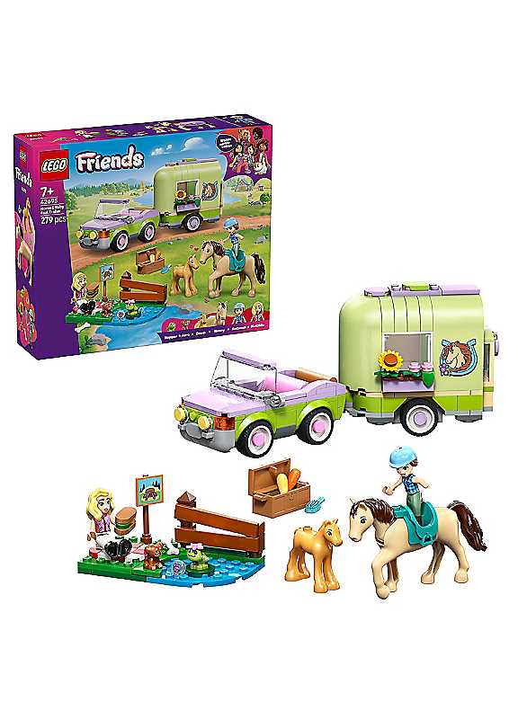 Let animal lovers enjoy hours of animal care role play with the LEGO Friends Horse & Baby Foal Trailer toy for 7+ year old girls and boys (42695). This set includes 2 mini dolls plus toy horse, foal, puppy and frog animal figures. Explore every aspect of animal care using the detailed accessories to groom the animals and transport them in the trailer, then ride the horse figure over the jump.There are lots of different ways for girls and boys to play with this animal playset. They can create stories for Autumn and Matilde as they drive the car toy. Open the trailer to greet the horse and foal. Then saddle up the horse figure, ready for a ride. The model comes with a small side build with a picnic area, signpost, lake and a fence to jump over.This building set makes a cool gift for horse lovers or a fun birthday present for 7+ year old girls and boys who love animals. And with the LEGO Builder app, kids can enjoy intuitive building as they can zoom in and rotate sets using 3D instructions, save sets and track progress.DIGITAL INSTRUCTIONS - The LEGO Builder app guides kids on an intuitive adventure where they can save sets, track progress and zoom in and rotate models using 3D instructions.Age suitability: 7+ yearsTOY HORSE PLAYSET WITH TRAILER - Animal lovers can gallop into imaginative play with this LEGO Friends Horse & Baby Foal Trailer toy for 7+ year old girls & boys.GROOM, RIDE & PLAY - Girls & boys can create fun stories with a car toy, trailer & a small side build with a picnic area, signpost, lake & a fence2 MINI DOLLS & 4 ANIMAL FIGURES - LEGO Friends Autumn & Matilde mini dolls, plus a toy horse, foal, puppy & frog figures inspire hours of creative storytellingACCESSORIES FOR ROLE PLAY - Accessories include a saddle, sandwiches, a crate, a brush, carrots for the horses, & 2 small flowers to decorate the blanket.GIFT FOR HORSE LOVERS - This LEGO Friends building set provides a playful experience for nature-loving kids & makes a great birthday gift for 7+ year old girls & boysWARNING! Choking hazard. Small parts. | lego puzzle, puzzle toy, animal puzzles