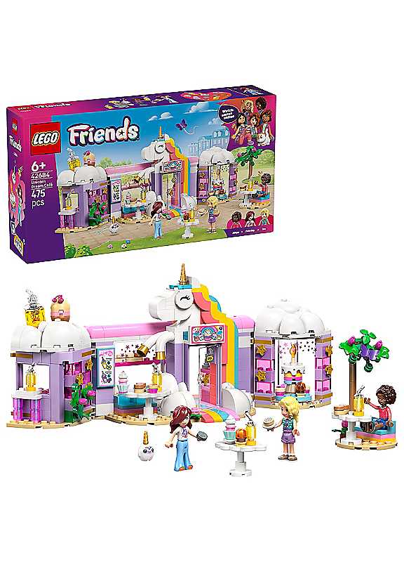 Give little ones a sprinkle of playtime creativity with the LEGO Friends Unicorn Dream Caf© toy for 6+ year old girls and boys (42684). Kids can play out their stories in the rainbow unicorn toy caf©, which includes lots of cute doll's house accessories. The detailed toy cake shop encourages open-ended play with 3 LEGO Friends mini dolls, and lots of toy food accessories including cakes, doughnuts, waffles and biscuits. There are also cute cupcakes to display in the window or on the turntable. Create more story possibilities with a juice and milkshake bar, indoor and outdoor seating areas, a toy cash register, and a LEGO unicorn teddy accessory. Young Friends fans can enjoy creative play with caf© owner Iza and customers Paisley and Aliya. This set makes a great birthday gift for 6+ year old girls and boys who love unicorns or enjoy pretend play. With the LEGO Builder app, kids can enjoy an intuitive building adventure where they can zoom in and rotate sets using 3D building instructions, save sets and track progress.Age suitability: 3+ yearsRAINBOW UNICORN CAFE PLAYSET - Kids can pretend-play as caf© owners with this detailed LEGO Friends Unicorn Dream Caf© toy for 6+ year old girls & boysPLAY OUT CAKE SHOP STORIES - Get creative displaying toy cupcakes in the windows & on the turntable, serving customers in the seating area & making milkshakes & juices at the bar3 LEGO FRIENDS MINI DOLLS - Paisley, Aliya & Iza mini dolls encourage kids to use their imaginations to create fun stories at the unicorn-themed cafeTOY FOOD ACCESSORIES - Bring play to life with toy doughnuts, waffles, cookies, cupcakes, cakes, a cash register, & a LEGO unicorn plushie accessoryUNICORN GIFT FOR 6+ YEAR OLD GIRLS & BOYS - This fun fantasy-themed building set makes a great gift for kids to celebrate birthdays or any other special occasionWARNING! Choking hazard. Small parts. | lego puzzle, lego board games