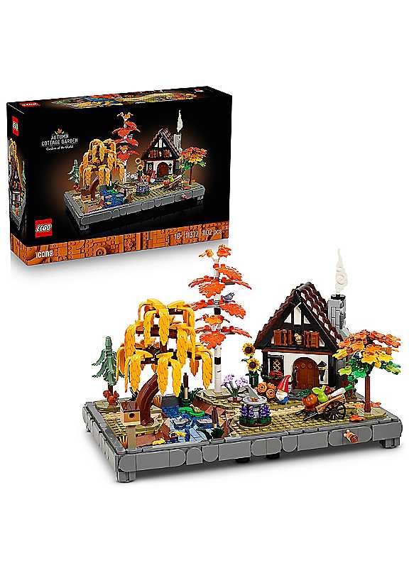 Capture the essence of autumn with the LEGO Icons Autumn Cottage Garden (11372) model building kit for adults. Craft a seasonal centrepiece bursting with autumn colours. Unwind as you build each intricate detail, then rearrange the trees, plants and cottage core decor elements to create a vibrant display for the home or office.Inspired by storybook cottages, this addition to the Gardens of the World collection features birch, weeping willow, blue spruce and maple trees, plus seasonal flowers. Other highlights include a sundial, birdhouse, vegetable cart, a garden gnome and a stream with stepping stones. A LEGO house with a cosy kitchen and woodland animal figures including robin and nuthatch birds, a squirrel, frog, and snail add the final touches to this model - a great gift for men and women who are fans of creative home decor. Build smarter with the LEGO Builder app - zoom, rotate in 3D, track your progress and follow step-by-step digital instructions.TOY FIGURES AND PLAYSETS - LEGO Gabby's Dollhouse toys let kids recreate favourite adventures with Gabby and friends and role-play imaginative adventures of their own.Age suitability: 18+ yearsGARDEN COTTAGE MODEL KIT - Take time out for a mindful project with the LEGO Icons Autumn Cottage Garden building set for adult fans of creative activities.VIBRANT GARDEN - Includes a cottage, 4 trees, LEGO flowers, a sundial, birdhouse, vegetable cart, garden gnome, & wood& animal figures including a robin, nuthatch, squirrel, frog & snail.CUSTOMISABLE HOME DECOR - Open the LEGO house to access a cosy kitchen interior & move the trees, plants & cottage core decor elements to create your own garden designGIFTS FOR NATURE LOVERS - Treat yourself or surprise a loved one with this LEGO Icons botanical building set, which makes a great gift for women, men & teenage fansCREATE A NATURE INSPIRED DISPLAY - Add this addition to the LEGO Icons Gardens of the World collection to 10315 Tranquil Garden & 10359 Fountain Garden (sets sold separately)WARNING! Choking hazard. Small parts. | puzzles for adults, animal puzzles, wooden puzzles