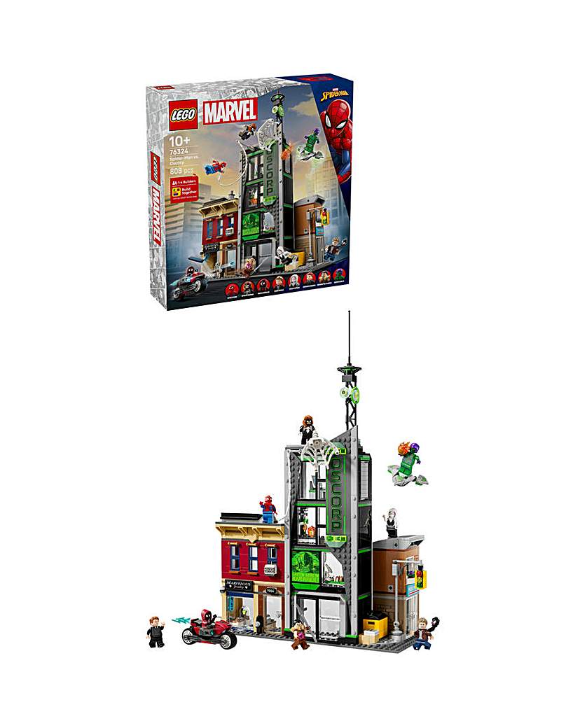 Lego Marvel Spider-Man vs. Oscorp (76324) is a premium build-play-and-display set that's bursting with Super Hero action, iconic characters and famous locations. This multi-model city scene makes an impressive gift for fans of Super Heroes and Marvel collectibles aged 10 and over. The street scene comprises 3 separate buildings: Miles Morales's apartment with a jewellery shop underneath, the Oscorp building, and Venom's apartment with a newsagent below. Each room is furnished with relevant equipment and accessories. 8 Lego minifigures from the Marvel films ensure endless web-slinging action: Spider-Man, Spider-Woman, Miles Morales with his motorbike, Eddie Brock, Ghost-Spider, Norman Osborn, Kraven the Hunter and Green Goblin with his glider. Transparent sticks allow kids to position and pose characters with realistic ease. Build Together on the Lego Builder app lets friends and family share the creative fun. Contains 808 pieces. Ages from 10 years.