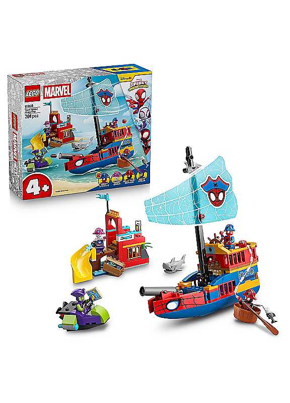 Set sail for imaginative play aboard the Team Spidey Pirate Ship (11208) creative building toy with Spidey, Green Goblin, Ghost-Spider and Miles 'Spin' Morales. This building set offers a great way for boys, girls and kids aged 4 and over to develop skills as they explore fun at sea and on Spider Island. This feature-packed Spidey building toy includes a pirate ship, Spider Island with a slide, Green Goblin's ship and a smaller boat. There's a cannon on the pirate ship, a disc shooter on the island and shooters on Green Goblin's ship. Spidey's web rope can be used to catch a fish, a treasure chest or Goblin's ship. This Spider-Man gift for fans of Spidey and his Amazing Friends comes with colourful pictorial instructions, a Starter Brick and separate bags containing 1 buildable model per bag to make creative construction fast and fun. And, with the LEGO Builder app, kids can zoom, rotate in 3D and track progress with simple digital instructions. Building set contains 201 pieces.Age suitability: 3+ yearsSUPER HERO PIRATE SHIP - All aboard the Webs Ahoy when Green Goblin steals a treasure chest in this LEGO Marvel Team Spidey Pirate Ship toy for 4+ year old boys & girlsEASY TO BUILD - Fuel kids' imaginative play with endless superhero adventures using big & easy-to-handle pieces to create a pirate ship, Spider Island, & 2 small boats4 LEGO MARVEL MINIFIGURES - Includes Spidey, Ghost-Spider, Miles 'Spin' Morales & Green Goblin, plus Trace-E, a shark figure & lots of cool accessoriesCOOL FEATURES - With this superhero toy, kids can fire a cannon & other shooters, or reel in a fish, a treasure chest or even Goblin's boat using Spidey's web ropeSPIDEY GIFT FOR FANS - This LEGO Marvel building set helps pre-schoolers develop fine motor skills & creativity, making it a great birthday gift for 4+ year old boys & girlsWARNING! Choking hazard. Small parts. | lego puzzle box, puzzle toy, puzzles for 5 year olds, puzzles for 3 year olds, puzzles for 4 year olds, lego board games, spiderman puzzle, marvel hero toys, lego puzzle, marvel puzzle