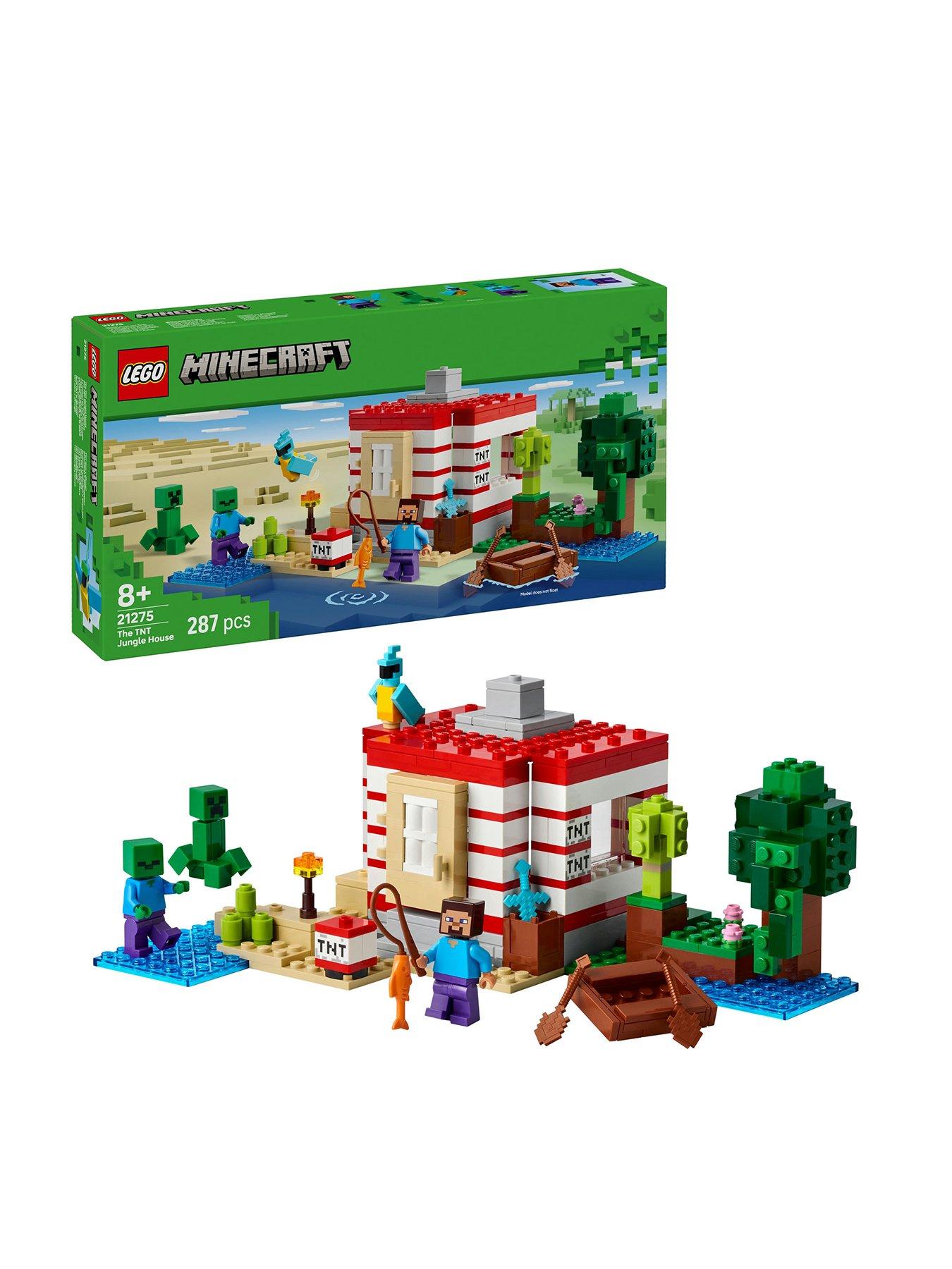 Explosive Action Awaits Minecraft Players And Fans As They Build, Play With And Display The Tnt Jungle House Lego Video Game Merch And Gaming Decor. Give Minecraft Players And Fans An Explosive Treat With This Fun And Creative Toy. The Tnt Jungle House (21275) Is A Versatile Gamer Gift For Kids Aged 8 And Over With A Passion For Adventure Toys, Video Game Decor And Minecraft Action And Adventures. The Buildable House Is Set In The Minecraft Jungle Biome And Looks Like A Large-Scale Version Of The Game'S Iconic Tnt Element. A Switch On The Side Lets Kids Trigger An Exploding Tnt Function, Which Collapses The Entire House. When The Dust Settles, Kids Can Rebuild The House So It'S Ready For Their Next Adventure. Steve, Creeperâ„¢ And Zombie Minifigures Inspire Imaginative Play And Battle Action. Authentic Lego Minecraft Accessories Include A Boat, Fishing Rod, Fish, Parrot And Jungle Foliage. The Lego Builder App Gives Kids The Added Fun Of Using Their Device To Zoom In And Rotate Models In 3D. Contains 287 Pieces.