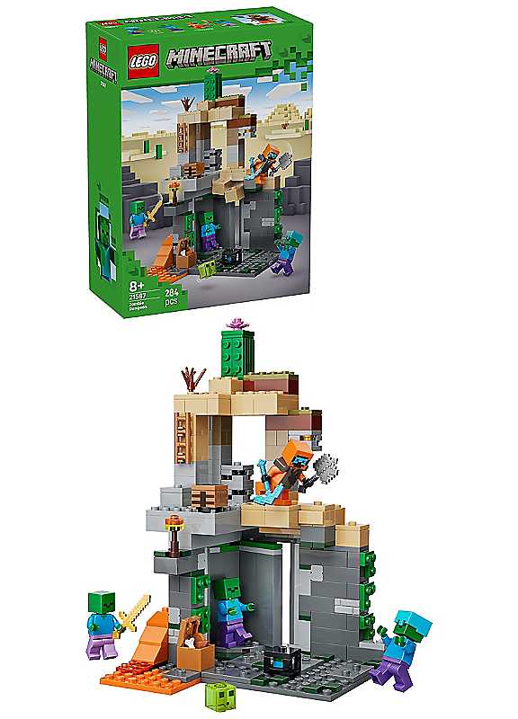 Take on a horde of Minecraft zombies with the LEGO Minecraft Zombie Dungeon (21587) building toy for 8+ year old boys and girls. Kids venture into a zombie dungeon filled with Minecraft figures, authentic gaming decor, plus fun features and accessories. The LEGO Minecraft toy is set in the game's desert biome, and features a Wastelands Wanderer LEGO Minecraft minifigure equipped with a diamond pickaxe, mace and netherite armour - a slime and 3 Minecraft zombie figures, including one with enchanted leggings and gold sword and one with diamond helmet. Hands-on features include a rotating, zombie-spawning chamber and a sliding piece that triggers a rockfall. Other accessories to inspire imaginative play include a crafting table, torch and a chest containing bread, bone and rotten flesh. This building toy set makes a great Minecraft gaming gift for 8+ year old boys and girls, plus older fans of gaming decor. And, with the LEGO Builder app, kids can build with confidence - zoom, rotate in 3D and track progress with easy-to-follow digital instructions.Age suitability: 8+ yearsBATTLE WITH MINECRAFT MOBS - The Zombie Dungeon is a collectible LEGO Minecraft toy for 8+ year old boys & girls that takes kids on an exciting adventure against a horde of zombies.INTERACTIVE MINECRAFT TOY FOR GAMERS - This LEGO Minecraft desert biome offers hands-on features to inspire imaginative play such as a rotating, zombie-spawning chamber & sliding piece to trigger a rockfall.LEGO MINECRAFT MINIFIGURE & MOBS - Includes a Wastelands Wanderer minifigure, a slime & 3 Minecraft zombie figures, including one with enchanted leggings & gold sword & one with diamond helmet.VIDEO-GAME-INSPIRED ACCESSORIES - LEGO Minecraft accessories include netherite armour, a mace, diamond pickaxe, gold sword, diamond helmet, crafting table, torch & a chest containing bread, bone & rotten flesh.GAMER GIFT FOR FANS - This LEGO Minecraft building set makes a great gift for 8+ year old boys & girls, fans of gaming & interactive building toys.MINECRAFT MADE REAL - Kids with a passion for Minecraft can create & customise scenes from the game; rearranging, rebuilding & reimagining as new adventures take shape.SETS FOR MINECRAFT PLAYERS - LEGO Minecraft building toys offer kids a huge range of familiar scenes, features & mobs from the popular gameWARNING! Choking hazard. Small parts. | lego puzzle, zombie board game, minecraft board game, minecraft puzzle, dungeon board game