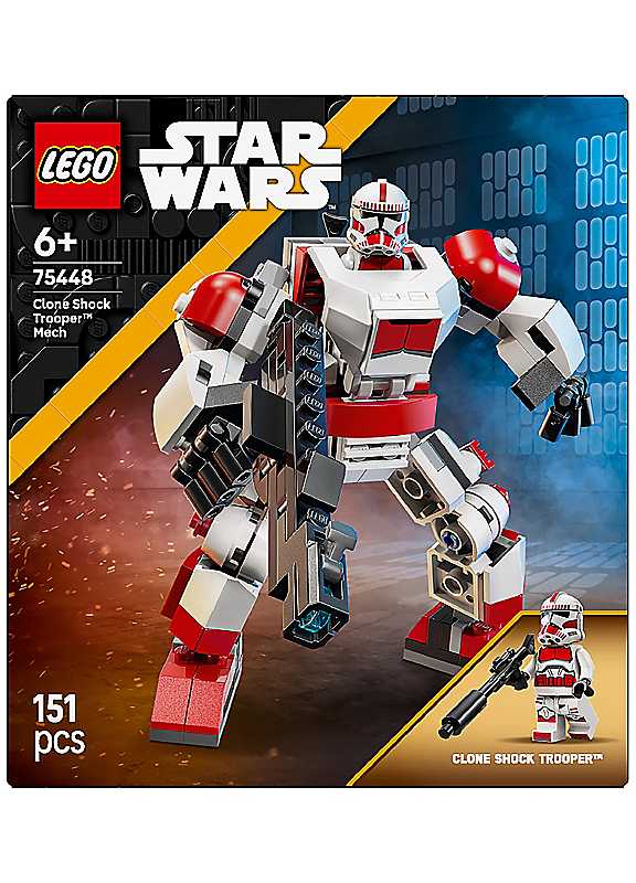 Give young children an exciting introduction to the LEGO Star Wars universe with the Clone Shock Trooper Mech (75448) toy for 6+ year old boys and girls. This posable mech figure is designed for an easy build so the action starts fast.Put the Clone Shock Trooper LEGO Star Wars minifigure in the mech's cockpit and clip its blaster rifle to the back of the mech. Adjust the mech's arms, legs and feet to create battle poses. Place the large blaster rifle in its gripping hands and activate its stud shooter. With its armour in the distinctive red and white colours of Clone Shock Troopers, the mech also looks cool displayed in kids' bedrooms between playtime missions.This mech toy building set is part of a collectible series of LEGO Star Wars mechs (sold separately), and makes a great birthday gift for 6+ year old boys and girls. Kids can also build with confidence using the LEGO Builder app - zoom, rotate in 3D and track progress with easy-to-follow digital instructions.BUILD CREATIVITY - LEGO Star Wars 4+ sets introduce young kids to the Star Wars universe, helping them learn to build and develop their imaginations through creative play.Age suitability: 6+ yearsMECH TOY FOR 6+ YEAR OLD BOYS & GIRLS - Introduce kids to action-packed play with this LEGO Star Wars Clone Shock Trooper Mech -a quick-build & posable robot figurePLAY & DISPLAY - Pose the mech's hands, arms, legs & feet, target enemies with its large, stud-shooting blaster rifle, & display the set between playtime adventuresLEGO STAR WARS MINIFIGURE - Place the Clone Shock Trooper LEGO minifigure in the armoured mech's cockpit & clip its blaster rifle to the backCOLLECTIBLE SET FOR FANS - This model kit is part of the collection of LEGO Star Wars mechs (sold separately) & will delight fans of Star Wars: The Clone Wars & Episode III - Revenge of the SithWARNING! Choking hazard. Small parts. | lego star wars, lego puzzle