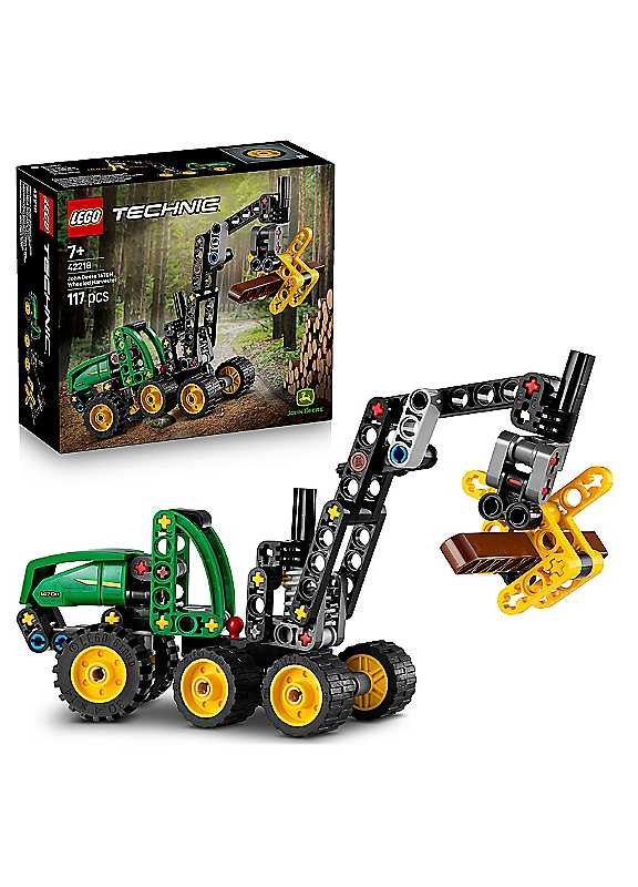 Inspire forest adventures for little ones with this LEGO Technic John Deere 1470H Wheeled Harvester (42218) construction vehicle toy for 7+ year old boys and girls.The building set comes with lots of features to delight young John Deere fans. Check out the boom that rotates 180 degrees. Then it's time for action as kids open and close the claw to grab, lift and lower the log. This STEM toy also features rocker suspension and articulated steering for kids to test out. With its eye-catching John Deere green, black and yellow colour scheme, this set makes a fun birthday gift for 7+ year old boys and girls that kids can play with time after time.LEGO Technic sets feature realistic movements and mechanisms that introduce young LEGO builders to the universe of engineering in an approachable and realistic way. Kids can build with confidence using the LEGO Builder app, which lets them zoom, rotate in 3D and track progress with easy-to-follow digital instructions.MORE CREATIVE FUN - Enjoy even more building adventures with other sets (sold separately) from the extensive LEGO Creator 3-in-1 range.Age suitability: 3+ yearsHARVESTER TOY - LEGO Technic John Deere 1470H Wheeled Harvester toy for 7+ year old boys & girls features a rotating boom & working claw for kids who love construction vehiclesTRANSPORT THE LOG - This building set includes a LEGO piece log for kids to grab, lift & transport using the claw & boom as they create their own forest & construction site adventuresSTEERING & SUSPENSION - This toy construction vehicle helps kids learn as they play & includes realistic functions including articulated steering, rocker suspension & a boom that rotates 180 degreesPLAY OUT FOREST JOBS - The build is just the start & kids will love creating their own stories as they role-play forest jobs with their harvester vehicle toyJOHN DEERE GIFT - This LEGO Technic harvester makes a fun birthday gift for 7+ year old boys & girls who love LEGO vehicles or John Deere toysWARNING! Choking hazard. Small parts. | lego puzzle, puzzle toy, mechanical puzzles