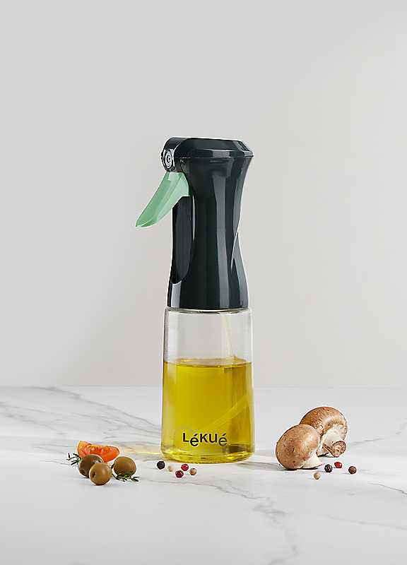 Your new kitchen essential for preparing crispy, healthy air fryer recipes! Perfectly coat your ingredients with the L©ku© Oil Sprayer. Thanks to its fine fan-shaped spray, it smoothly and evenly dispenses oil across your food and has an anti-drip system for less mess even when sprayed directly in the air fryer.Anti-clog filter - the spray features an anti-clog filter that prevents build-up in the mechanism, ensuring uniform diffusion, even with olive oilSmooth spray - the easy-to-use trigger delivers the perfect amount of oil with each squeezeEasy clean - 150 mlDishwasher-safe glass bottle, The nozzle is hand wash onlyGlass, PP & HDPE