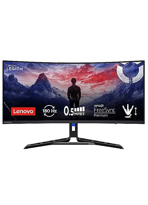 Delivers large-screen gameplayGet the most expansive view of your game on the monitor with its ultra-wide, 21:9 aspect ratio!Delivers complete immersionEnjoy new levels of immersion while enjoying your favourite games thanks to the monitor's 1500R curvature.Delivers lightning-fast response timesRelish buttery smooth gameplay and always stay ahead of the competition with the ultra-fast 180 Hz refresh rate and super quick 0.5ms MPRT.Screen size - 34 inchBrightness - 350 cd/m2Aspect ratio - 21:9Contrast ratio - 3000:1Backlight - WLEDViewing angle - 178°/178°Stand - Tilt Angle (-5°/22°), Swivel Angle (+30°/-30°), Lift Range (135 mm)EU energy rating - FPower requirement - 100 - 240 VAC, 50 - 60 HzIncludes - DP cableHeight adjustable - YesIntegrated speaker - Yes (2 x 3W)Power consumption - 43W Type, 55W Max, 0.3W Sleep, 0.5W Power OffSoftware / Driver - Lenovo Artery (Lenovo Accessories and Display Manager)Weight - 11.3kgMaximum resolution - 3440 x 1440Connection type - 2 x HDMI 2.1* (*Supports 3440 x 1440 @100 Hz as specified in HDMI2.1), 1 x DP 1.4, 1 x Audio Out (3.5 mm)Warranty - 3 YearsDimensions approx. 807.8H x 577.7W x 321.6D mm