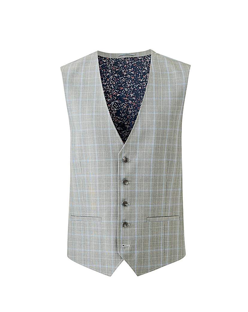 Light Grey Check Henry Suit Waistcoat in a Regular fit with a button front fasten, two jetted front pockets and a back adjuster.