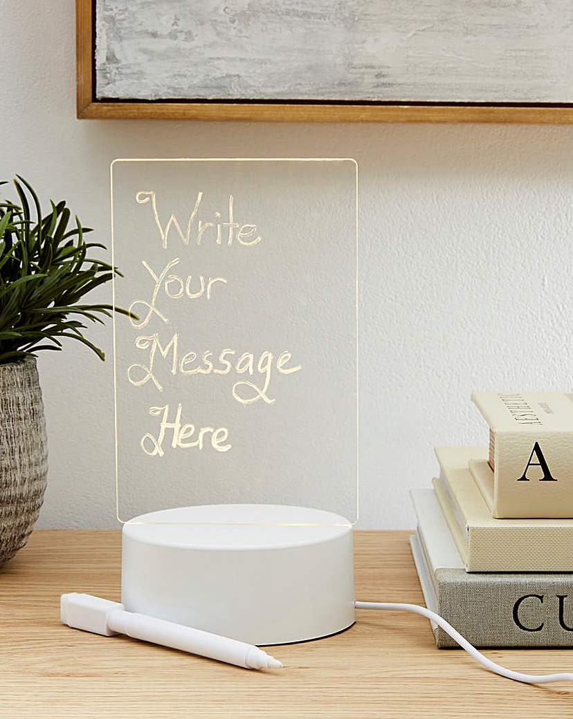 Brighten up your workspace with the Light-Up Bedside Memo Board, a perfect fusion of practicality and contemporary design. This sleek, USB-powered memo board allows you to easily write and erase notes, reminders, or sketches using a dry erase marker, making organization simple and fun. The vibrant LED backlighting not only improves visibility but also adds a touch of modern elegance to any desk. Whether placed in your home office, study area, or creative space, this memo board ensures your important messages always stand out.Elevate your workspace with this dynamic accessory, combining style, efficiency, and a little extra shine! Material: Plastic. Size (cm) H16 x W10 x L0.3. Packaged Dims (cm) H 20 x W 10.5 x L 10.5 cm. Packaged Weight (kg): 0.217.