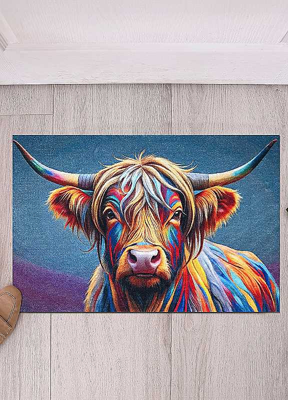 Likewise Rugs & Matting Abstract Highland Cow Mat - Multi