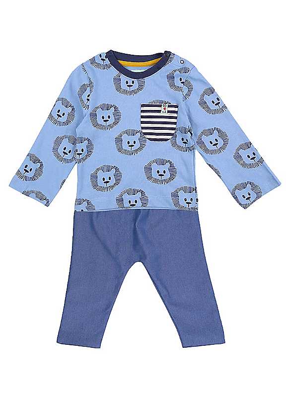Lilly & Sid Kids Organic Cotton Blue Happy Lion Print Top & Leggings Set - Size 0/3M