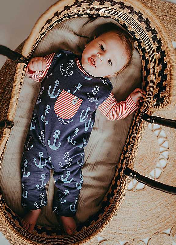 Our jersey dungarees set is a stress-free style solution for little ones! With a contrast stripe pocket and a red stripe long-sleeve top to complete the look, these are a fab style option for everyday play and comfort. This anchor print will delight little sailors this season. Popper neck and crotch fastening call for easy peasy dressing.Made from 100% GOTS certified organic cottonPrinted with azo-free dyestuffsNickel-free popper fastenings for easy peasy dressingPocket for hidden treasuresMachine washable100% Cotton