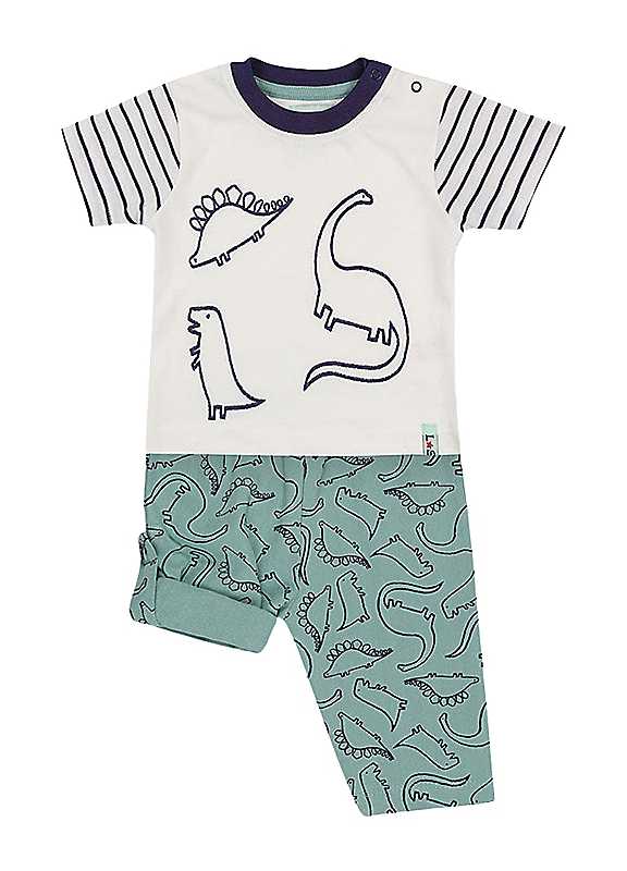 Lilly & Sid Kids Organic Cotton Multicoloured Dinosaur Print Top & Leggings Set - Multi - Size 0/3M