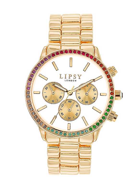 Lipsy Gold Bracelet Watch with White Dial.Brand: Lipsy3 Hands GoldAlloy Polished 38 CaseMineral glass round, White dialAlloy Gold Bracelet 3 ATMGold Alloy