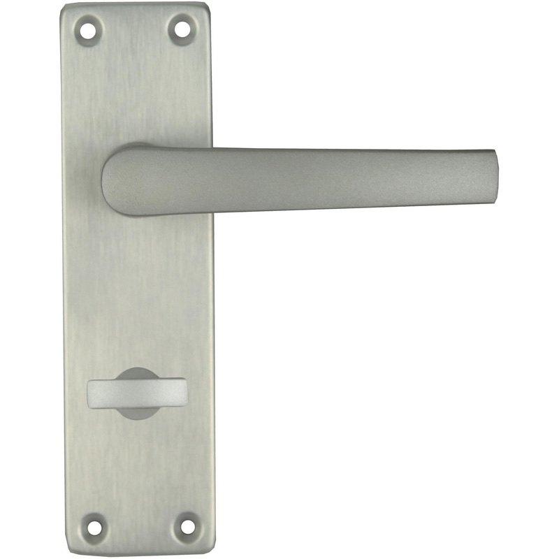 This bathroom door handle from Lockworks combines stylish simplicity with long-lasting reliability and ease of installation – it’s a real time-saver for busy trade pros, but equally suitable for any quick DIY replacement job at home. The traditional shape and satin finish will suit almost any internal door style, complementing your home interior with a smart look that stands the test of time. Two handles, a bar and fixings are included for speedy installation. Suitable for use with a bathroom sash lock – not included. * Designed for use with a bathroom sash lock * Suitable for internal doors of 30-45mm thickness * 105mm handle length with 48mm projection * 155 x 43mm plate with integrated thumbturn * Durable aluminium design with a satin finish * Includes two handles, bar and fixing screws | Lockworks Manila Contract Aluminium Door Handle Bathroom Satin (Pair) in Chrome