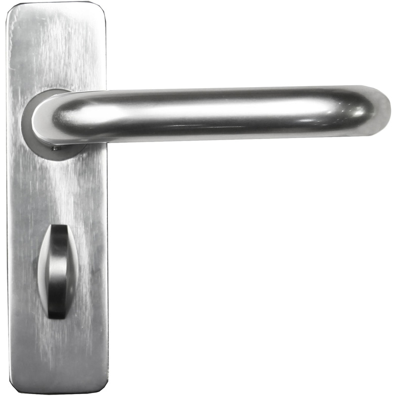 The large rounded bar styling of this Lockworks door handle makes it a perfect choice for heavy-duty use in busy public areas. The robust aluminium handle comes with a matching backplate and thumbturn. The pair of handles includes a bar and fixing screws for quick and easy fitting on internal doors. This hassle-free installation is what makes Lockworks door handles such a popular choice for trade pros and DIY jobs alike. Suitable for use with a bathroom sash lock – not included. * Designed for use with a bathroom sash lock * Suitable for internal doors of 30-45mm thickness * Round bar handle shape for heavy-duty use * 135mm handle length with 72mm projection * Concealed fixing backplate for a smarter fit * 154 x 41mm plate with integrated thumbturn * Durable aluminium design with a polished finish * Includes two handles, bar and fixing screws | Lockworks Round Bar Aluminium Door Handle Bathroom Polished (Pair) in Chrome