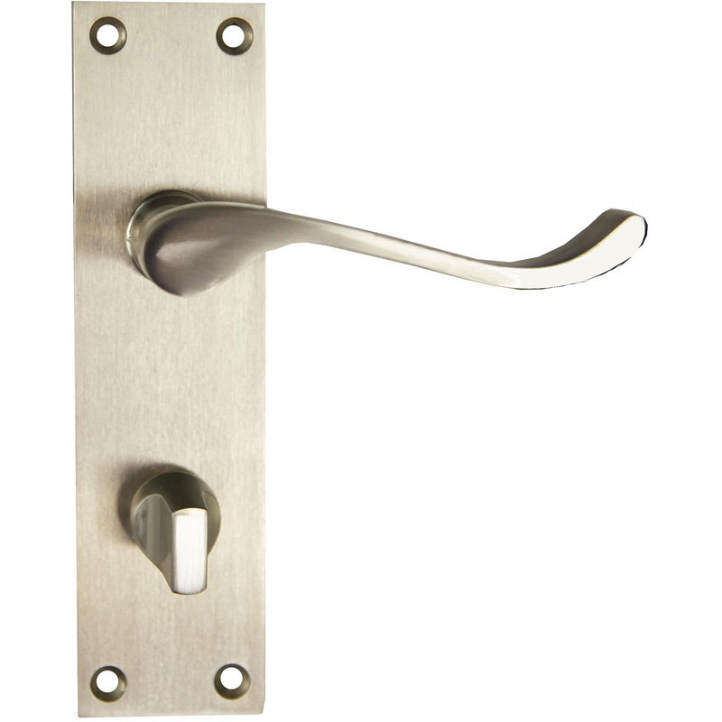 The elegant curved styling of this Victorian scroll door handle will bring out the best in any home. A timeless satin nickel finish elevates both traditional and modern interiors – all with long-lasting Lockworks reliability for a stylish fit that lasts. Two handles are supplied along with a bar and all the fixing screws you’ll need for a quick and easy installation. It’s a real time-saver for trade pros, and takes all the hassle out of DIY fitting. Suitable for internal doors of 30-45mm thickness, and designed for use with a bathroom sash lock – not included. * Designed for use with a bathroom sash lock * Suitable for internal doors of 30-45mm thickness * Victorian scroll lever with elegant curved design * 98mm handle length with 55mm projection * 152 x 42mm plate with integrated thumbturn * Satin nickel finish suits any home interior * Includes two handles, bar and fixing screws | Lockworks Victorian Scroll Door Handle Bathroom Satin (Pair) in Nickel