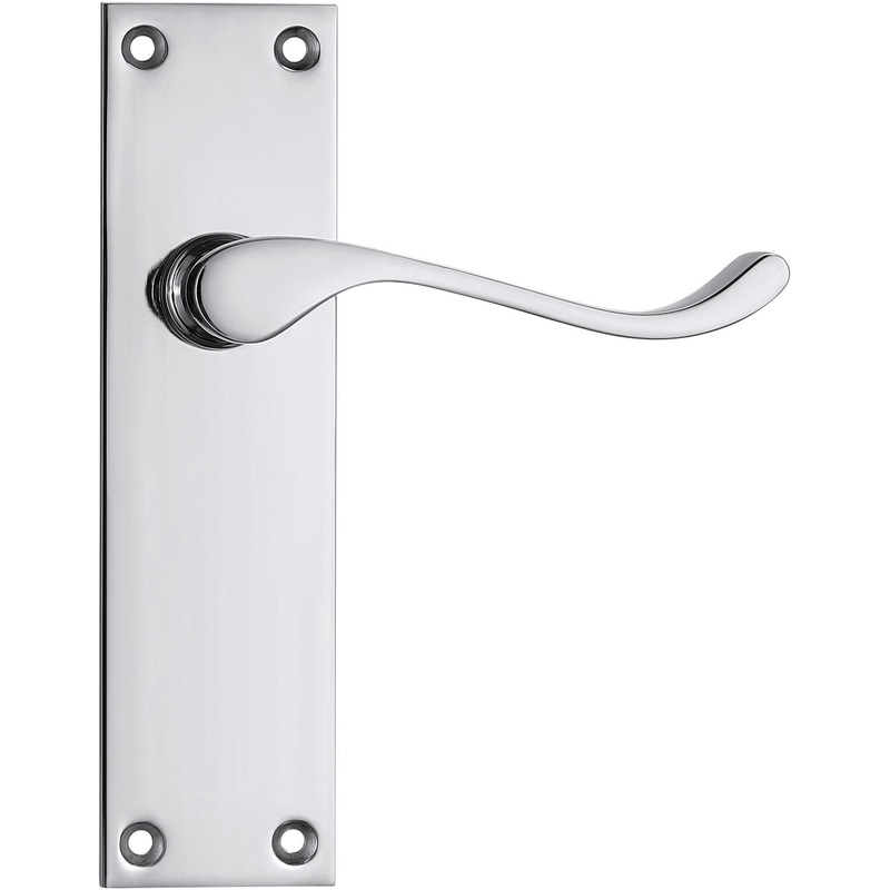 The elegant curved styling of this Victorian scroll door handle will bring out the best in any home. A glistening polished chrome finish elevates both traditional and modern interiors – all with long-lasting Lockworks reliability for a stylish fit that lasts. Two handles are supplied along with a bar and all the fixing screws you’ll need for a quick and easy installation. It’s a real time-saver for trade pros, and takes all the hassle out of DIY fitting. Suitable for internal doors of 30-45mm thickness, and designed for use with a tubular mortice latch – not included. * Designed for use with a tubular mortice latch * Suitable for internal doors of 30-45mm thickness * Victorian scroll lever with elegant curved design * 98mm handle length with 55mm projection * 152 x 42mm plate in a polished chrome finish * Includes two handles, bar and fixing screws | Lockworks Victorian Scroll Door Handle Latch Polished (Pair) in Chrome