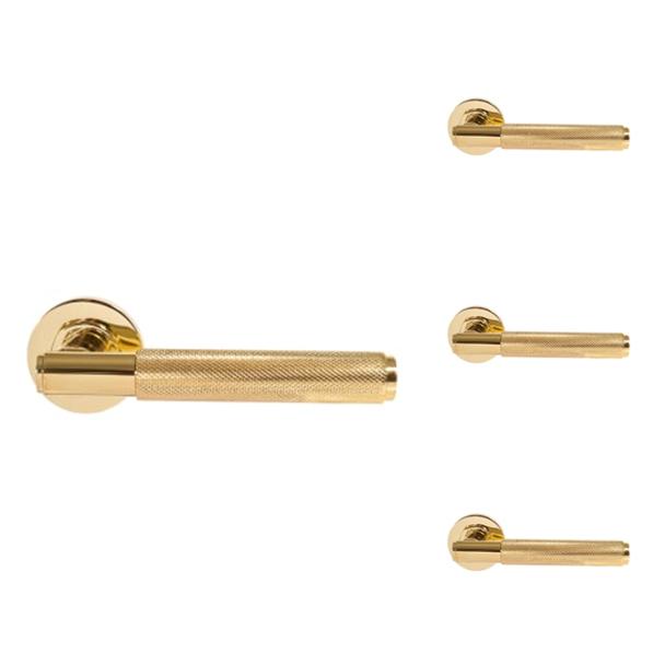 London Polished Brass Round Rose Door Handle 1 Pair Pack of 4