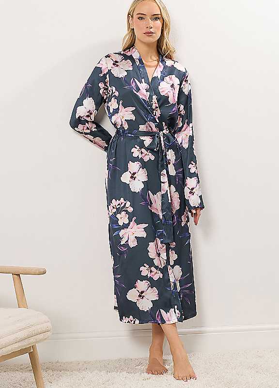 Designed for women 5ft 8in and over. Add a touch of luxury into your nightwear collection with this new-in floral robe! Made from a soft satin fabric, it features long sleeves, a tie waist belt, an inner tie fastening, and is complete in a maxi length. Simply layer over your favourite pyjamas for your next night in.Machine washable100% PolyesterKeep away from fire.