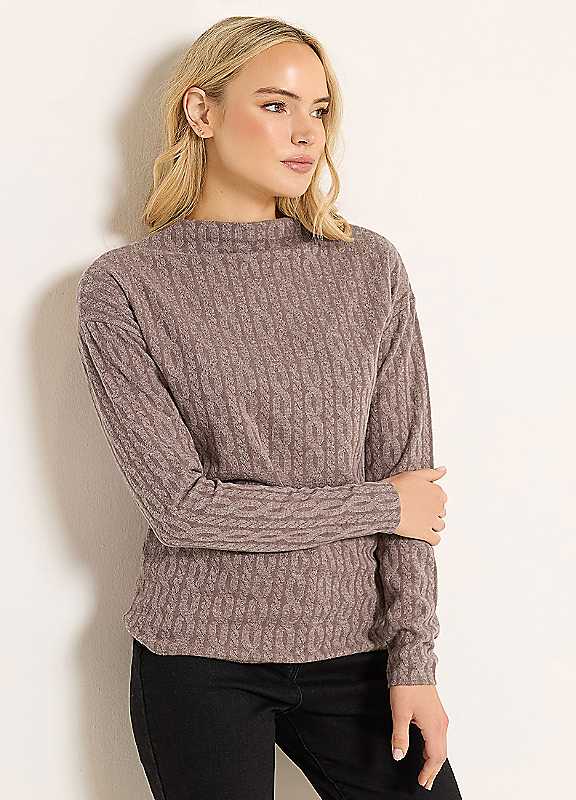 Combine style and comfort with this textured top. Made from a soft knit fabric, it features a funnel neckline and is completed with long sleeves. Style with leggings and trainers for your new every day casual!Designed for women 5 feet 8 inches and overMachine washable85% Polyester, 12% Viscose, 3% Elastane