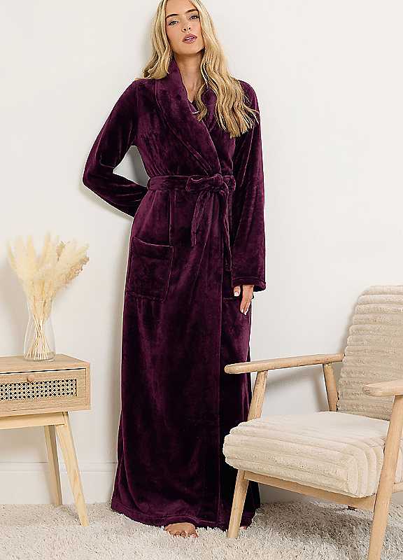 Designed for women 5ft 8in and over. Unwind with this maxi dressing gown from long tall sally. Made from a super soft fabric, it features a shawl collar, front pockets and a belt tie fastening. Complete your pre bedtime look with our slipper socks for added comfort!Machine Washable100% Polyester