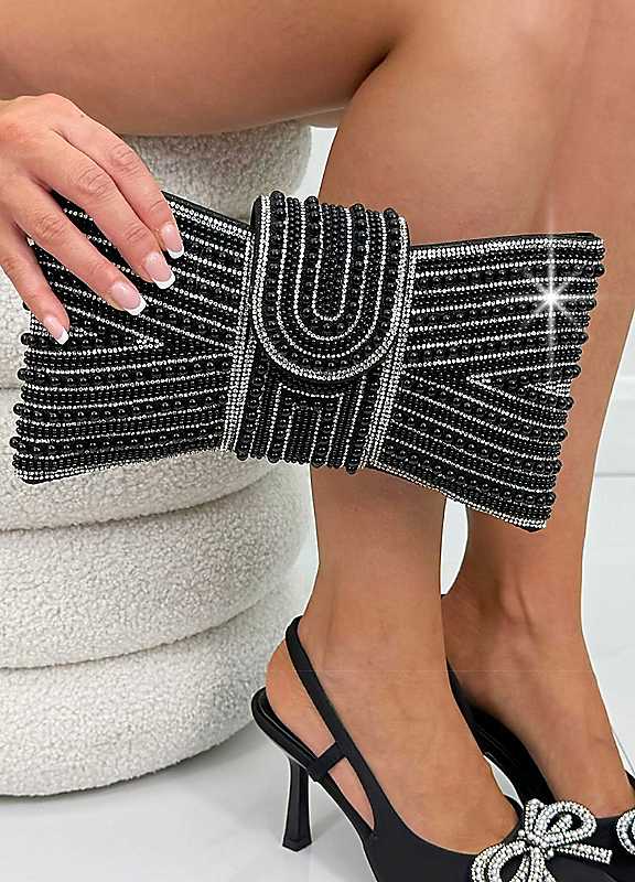 Love Lemonade Sparkly Black Pearl Bow Clutch Bag
