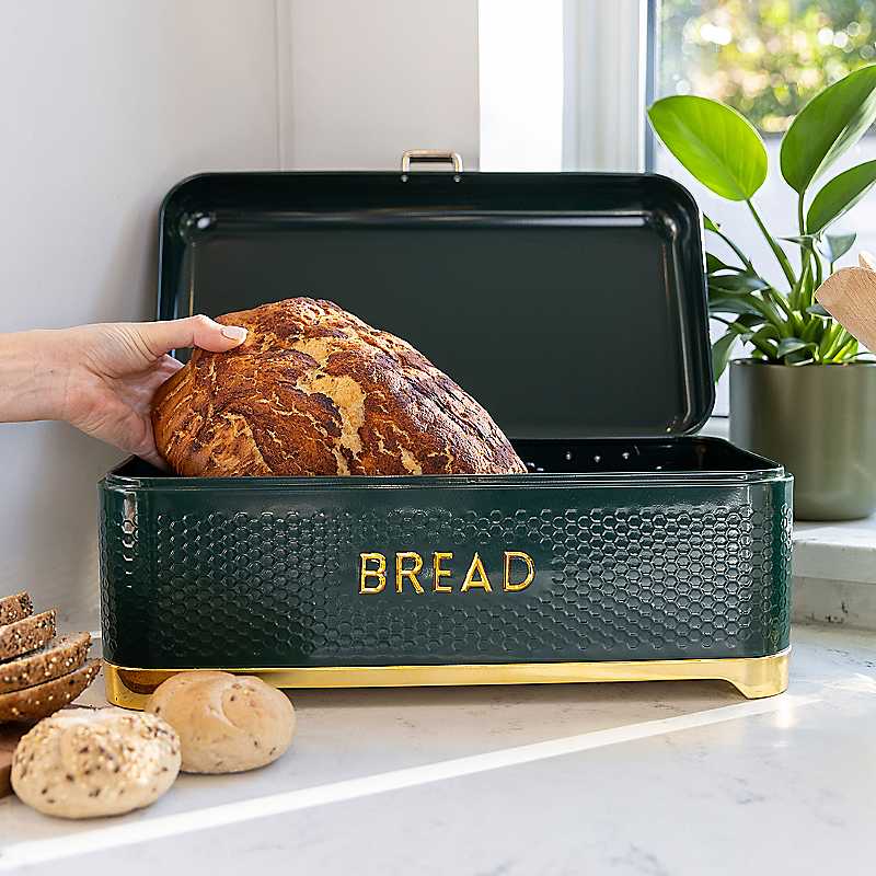 The stylish Lovello collection brings a delightful charm to your kitchen with its raised geometric design on a range of durable kitchen storage products that combine retro curves with modern quality. The powder coated metal storage containers feature raised mirror polished lettering on each item identify the contents. They are designed to maximise your worktop space and reduce clutter. Lovello Bread Bin Features: Wipe clean Steel Dimensions approx. 18H x 42W x 22D cm (7 x 16½ x 8¾ in)