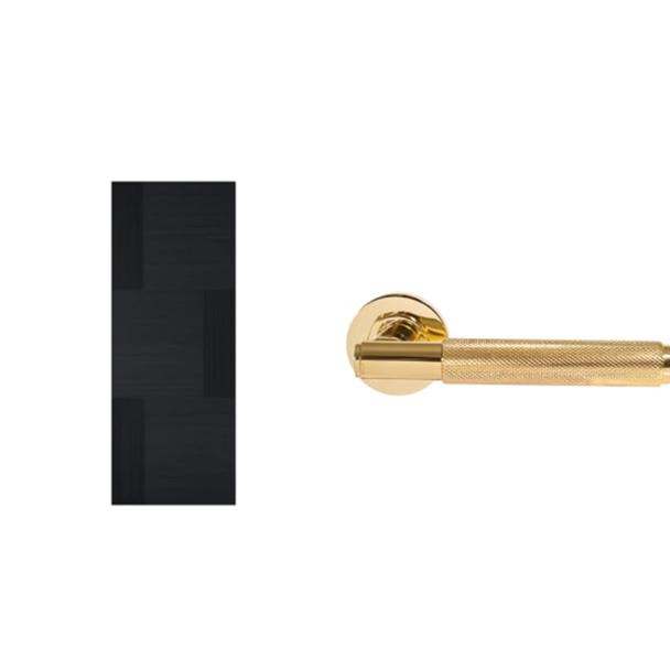 LPD Internal Seis Pre Finished Charcoal Black Solid Core Door 686 x 1981mm + London Polished Brass Round Rose Door Handle 1 Pair