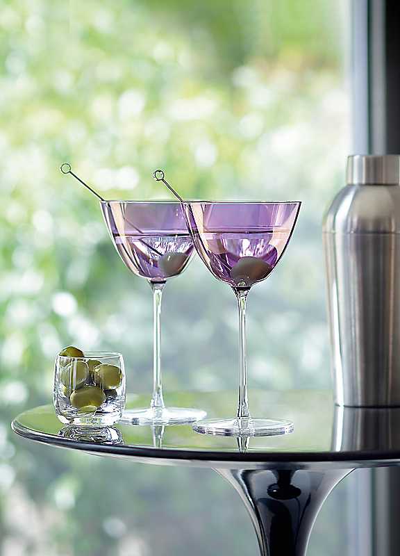A set of four stemmed martini glasses handpainted and decorated with iridescent purple lustre. Ideal for cocktails.Brand: LSAWashable30% PU, 62% Polyester, 8% Elastane