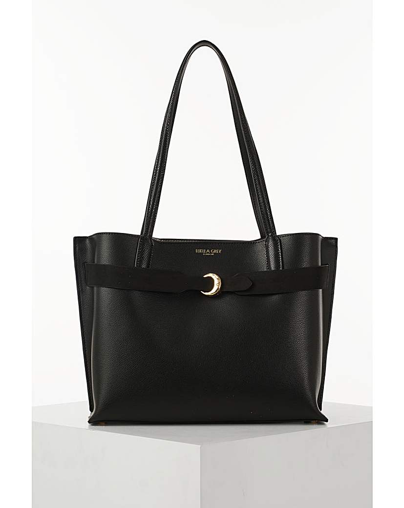 Luella Grey Connie Black Laptop Tote Meet Connie, our updated laptop tote that perfectly balances practicality with chic styling. Designed to discreetly carry your laptop, Connie is cleverly disguised as a sophisticated everyday tote, making her the ideal companion for both work and leisure. Her central compartment is lined with protective soft material and fits a laptop measuring H31cm x W23cm x D1cm. As well as this, Connie has a zipper pocket, a slip-in pocket and a clip for you to attach your keys to. Connie is elevated by the Cannon Street clasp, a distinctive Luella Grey signature that adds a sculptural finish. Spacious, functional and beautifully refined, this tote ensures your essentials are kept safe and stylish wherever the day takes you. Your lovely bag will be delivered to you in our protective branded dust bag. Outer: 90% Polyurethane + 10% Polyester. Lining: 100% Polyester. H: 27cm, Bottom W: 35cm, Top W: 39cm, D: 15cm. Handle drop 30cm.