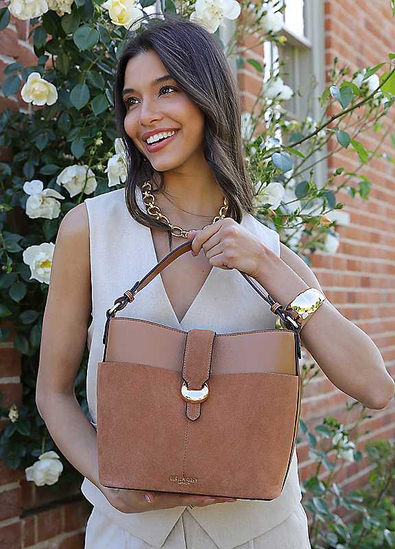 Luella Grey Indra Camel Bucket Crossbody Bag