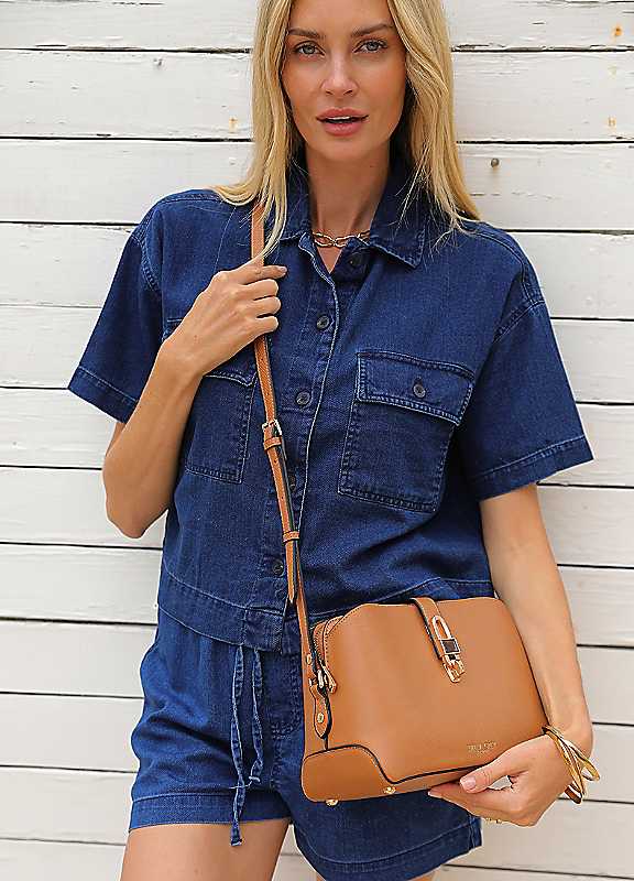 Luella Grey Margy Camel Zip Top Crossbody