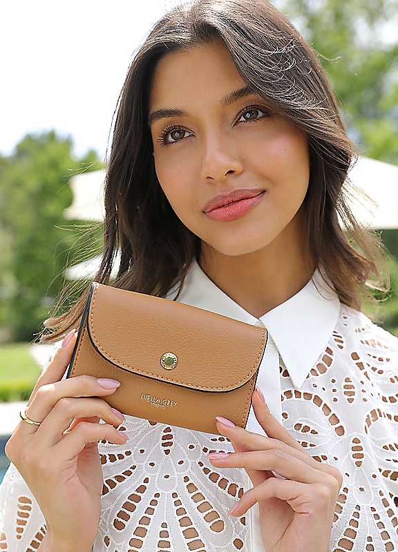 Say hello to Marina, the versatile purse that is as cute as it is practical. Designed with a secure popper closure, Marina opens to reveal a zipped internal section for coins and small essentials, while the back offers room for three cards. Compact, stylish, and beautifully detailed, Marina is the perfect everyday accessory and also makes a thoughtful gift.Outer: 100% PolyurethaneLining: 100% PolyesterDimensions approx. 9H x 14W x 2D cm