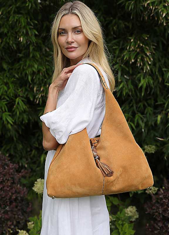 Soft and sumptuous, our Pandora Hobo Bag is crafted from luxurious suede with a relaxed, oversized silhouette. Finished with our new Mayfair tassel adorned with resin beads and complete with a detachable inner pouch, she's the ultimate boho-luxe bag for everyday style. She comes with her own dust bag to keep her safe whilst not in use.Outer: 80% Leather & 20% PolyurethaneLining: 100% PolyesterDimensions approx. 27H x 42W x 10D cmShoulder strap drop length approx. 29cm