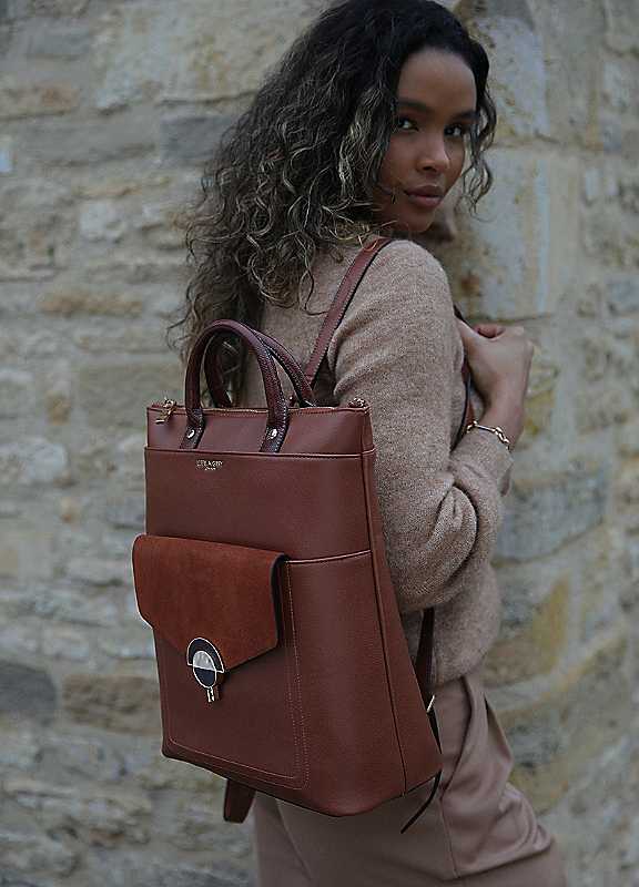Autumn winter 2025 sees the launch of our new backpack, style sally - the zip-top backpack which will accompany you to work (or play). Sally is the sophisticated but casual backpack, that features the green park clasp on her front pocket and is designed to fit a laptop. The internal laptop compartment has a soft padded lining for protection. In addition to this is an internal zip compartment with a clip for keys. Sally also comes complete with a protective dust bag.Outer: 90% Polyurethane & 10% LeatherLining: 100% PolyesterDimensions approx. 35H x 26W x 13D cmHandle drop length approx. 25 cmFits a laptop 31.5W x 24.5H x 2D cm