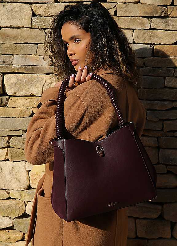 We're thrilled to introduce Simone, our new braided handle shoulder tote for the Autumn Winter season. The handle is a unique Luella Grey design that is hand finished to create a soft braid of luxurious material which is durable and beautiful. With model good looks, she's our statement hobo of the season and will elevate every day you wear her. She has a secure internal zip compartment and is roomy enough for your daily needs and more. Simone also comes complete with a protective branded dustbag.Outer: 70% Polyurethane, 30% PolyesterLining: 100% PolyesterDimensions approx. 26H x 35W x 13D cmHandle drop: 25 cm | burgundy purse, braided handle handbag, fall purses, polyester tote bags, polyurethane purse, polyester purse, shoulder handbags, shoulder purse