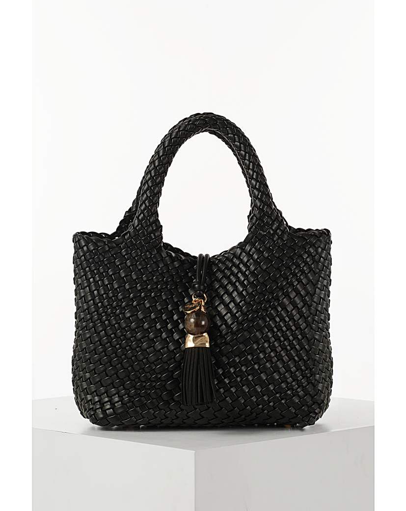 Luella Grey Suky Black Medium Woven Crossbody The Suky Crossbody Tote is the smaller sister to Saskia, beautifully hand-woven, bringing a tactile finish to a timeless silhouette. Chic yet practical, this soft woven tote bag is lightweight, comfortable to wear, and perfectly sized for everyday essentials. Internally, Suky has a removeable '2-in-1' zipper pouch that can be used on it's own as well as with the bag. With its artisanal weave and effortless style, Saskia is the ideal companion for workdays, weekends, or relaxed summer outings. Suky will arrive with a dustbag for safely storing when not in use. Outer: 100% Polyurethane. Lining: 100% Polyester. H: 22cm , W: 29cm , D: 13cm, Grab Handle Drop 14cm, Strap Drop 50-60cm adjustable
