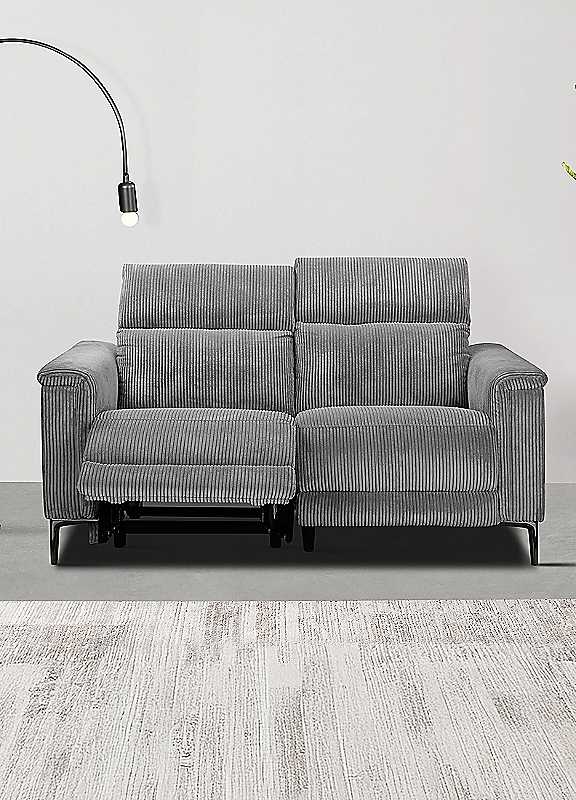 Get cosy with The Lund Power Recliner range. The range is offered in several sizes of sofa: L-shaped corner sofa where the chaise longue is located on the left side of the corner sofa, viewed from the front. The 3-seater (with reclining function in 2 seats) and 2-seater sofa, which will fit and grace any home. Sit back, relax, and get cosy on a stylish recliner sofa set which is designed for total comfort. All sofas feature both manual and electric reclining functions. The integrated headrest makes leaning back truly comfortable. It is infinitely adjustable, so you can find your ideal position, which is a relief for your neck. The elastic belt suspension ensures a high level of seating comfort and supports the soft upholstery. The grey and black plastic feet require virtually no maintenance, as residue, dirt or dust can be easily wiped off with a damp cloth.Minimal AssemblySuggested Number of People for Assembly: 2Weight of Product: 111 kg, 111 kg, 71 kgNumber of Seats: 3, 3, 2Non-Removable CushionsSeat Construction: Fixed Seat CushionSeat Dimensions (in cm): 55 cmLegs: 4 Metal Legs (Height 15 cm)Wipe cleanCorduroy, WoodOverall assembled dimensions approx. 97H x 261W x 179D cm3-seater dimensions approx. 97H x 222W x 100D cm2-seater dimensions approx. 97H x 160W x 100D cmPlease remember to measure your available space before ordering. If using on an un-carpeted floor we recommend rubber or felt protection pads be used under the legs to avoid damage to your floors. | corner sofa recliner, power reclining sofa, wood sectional sofa, grey sectional sofa, contemporary sectional sofas, corduroy sectional couch, l shaped sofas