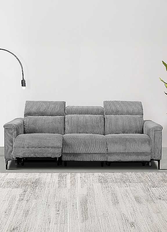 Get cosy with The Lund Power Recliner range. The range is offered in several sizes of sofa: L-shaped corner sofa where the chaise longue is located on the left side of the corner sofa, viewed from the front. The 3-seater (with reclining function in 2 seats) and 2-seater sofa, which will fit and grace any home. Sit back, relax, and get cosy on a stylish recliner sofa set which is designed for total comfort. All sofas feature both manual and electric reclining functions. The integrated headrest makes leaning back truly comfortable. It is infinitely adjustable, so you can find your ideal position, which is a relief for your neck. The elastic belt suspension ensures a high level of seating comfort and supports the soft upholstery. The grey and black plastic feet require virtually no maintenance, as residue, dirt or dust can be easily wiped off with a damp cloth.Minimal AssemblySuggested Number of People for Assembly: 2Weight of Product: 111 kg, 111 kg, 71 kgNumber of Seats: 3, 3, 2Non-Removable CushionsSeat Construction: Fixed Seat CushionSeat Dimensions (in cm): 55 cmLegs: 4 Metal Legs (Height 15 cm)Wipe cleanCorduroy, WoodOverall assembled dimensions approx. 97H x 261W x 179D cm3-seater dimensions approx. 97H x 222W x 100D cm2-seater dimensions approx. 97H x 160W x 100D cmPlease remember to measure your available space before ordering. If using on an un-carpeted floor we recommend rubber or felt protection pads be used under the legs to avoid damage to your floors. | corner sofa recliner, power reclining sofa, wood sectional sofa, grey sectional sofa, contemporary sectional sofas, corduroy sectional couch, l shaped sofas