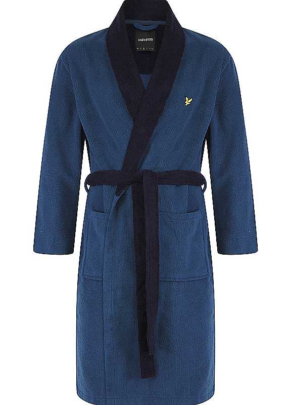Lyle and Scott Adrian towelling bathrobe with contrasting collar and belt.Featuring the classic embroidered eagle. Perfect for any occasion or gifting. Washable50% Cotton, 50% Polyester