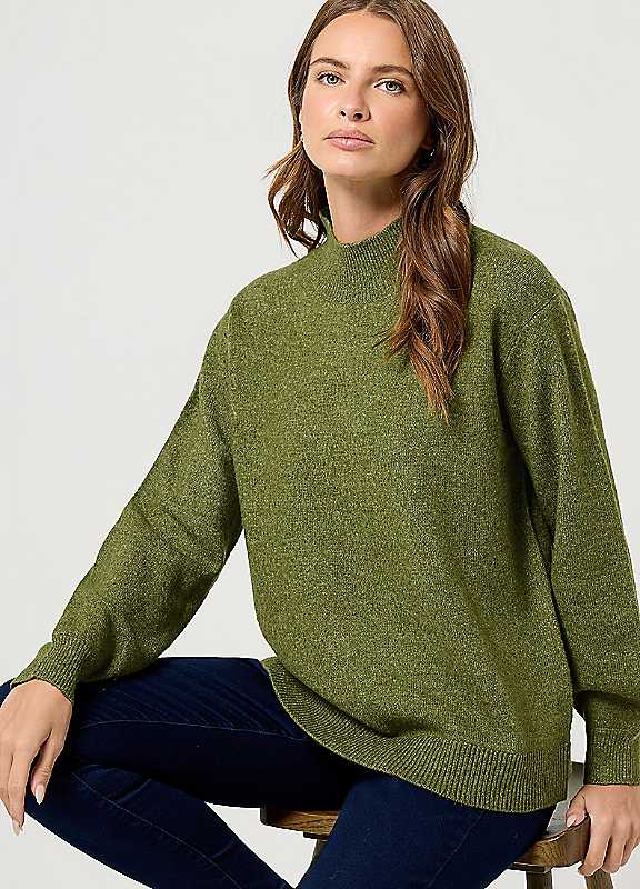 M&Co Funnel Neck Balloon Sleeve Jumper - Green - Size 18/20