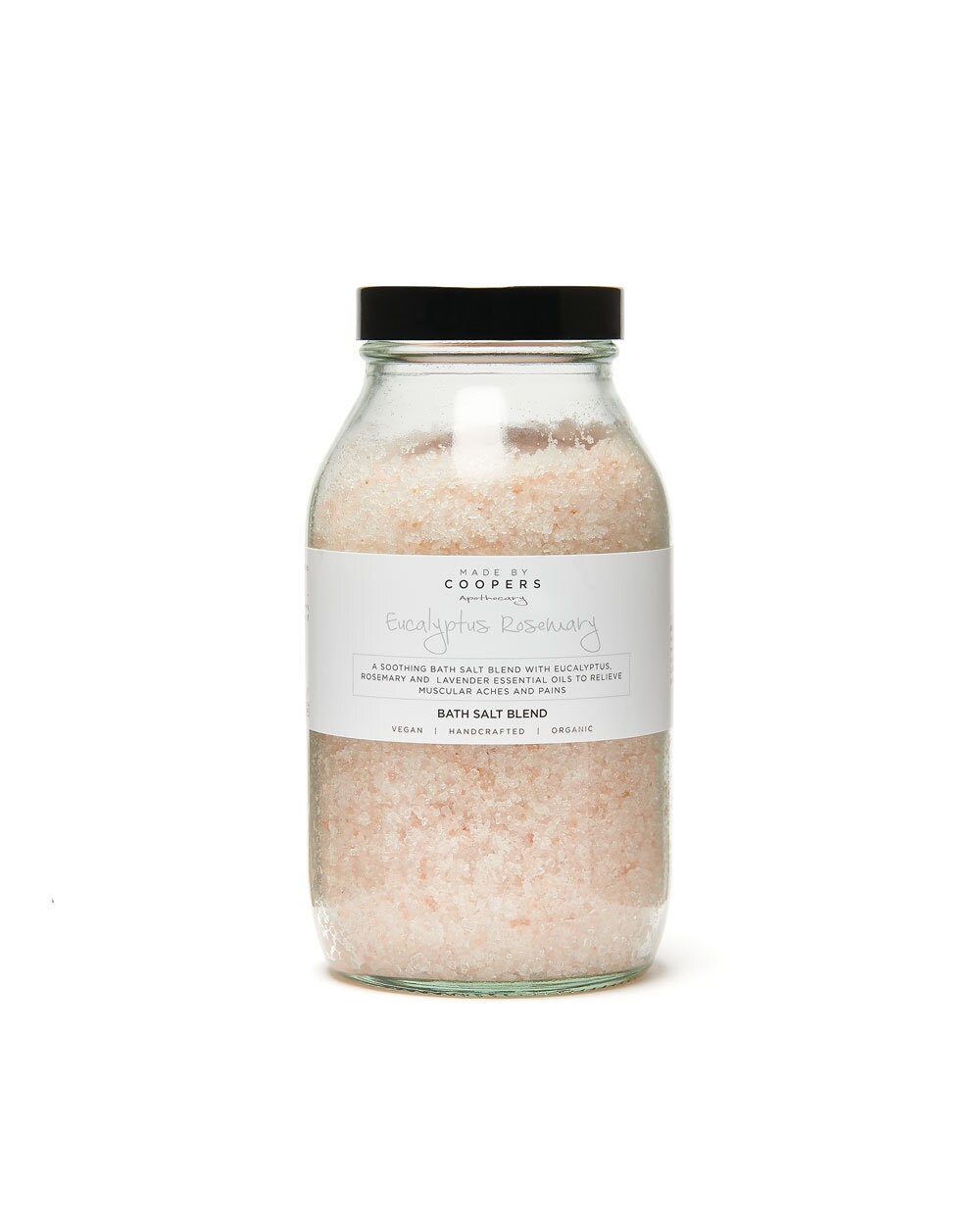 Made By Coopers Eucalyptus Rosemary Bath Salt Made with Mineral Rich Himalayan Epsom Salts. A soothing bath salt blend combining Eucalyptus Rosemary and Lavender essential oils to relieve muscular aches and pains. The natural healing effects of Himalayan and Epsom salts make this the perfect combination for recovery and relaxation. Combine with our sleep spray or relaxing face and body oil to create the perfect relaxation routine.