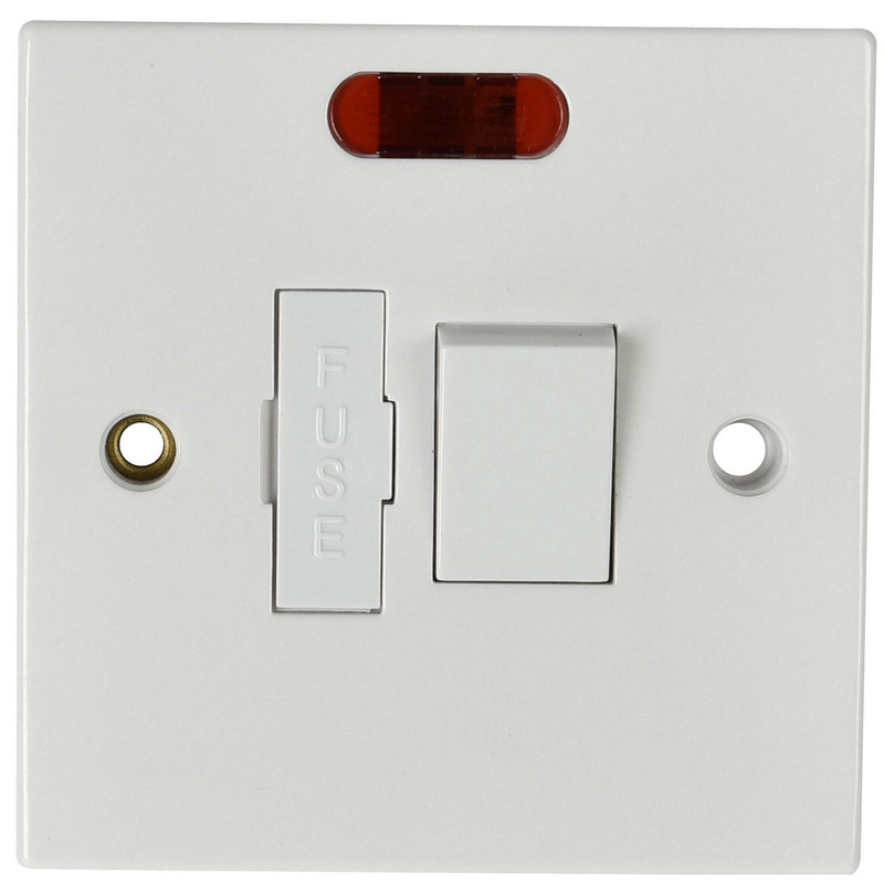 This Made4Trade 13A switched fused spur provides a safe, fused, and switchable connection point for fixed appliances. It is double pole (DP) for enhanced safety, rated at 13A, and operates on a 250V~ power voltage. * 13A Switched Fused Spur – provides safe, fused, and switchable power to fixed appliances * Double Pole switching – enhances safety by isolating both live and neutral * Amp Rating: 13A – provides ample power for standard appliances * Power Voltage: 250V~ – suitable for standard UK electrical installations * Available with or without a Neon indicator – choose the option that clearly shows you when the switch is live | Made4Trade 13A Fused Spur Switched with Neon in White