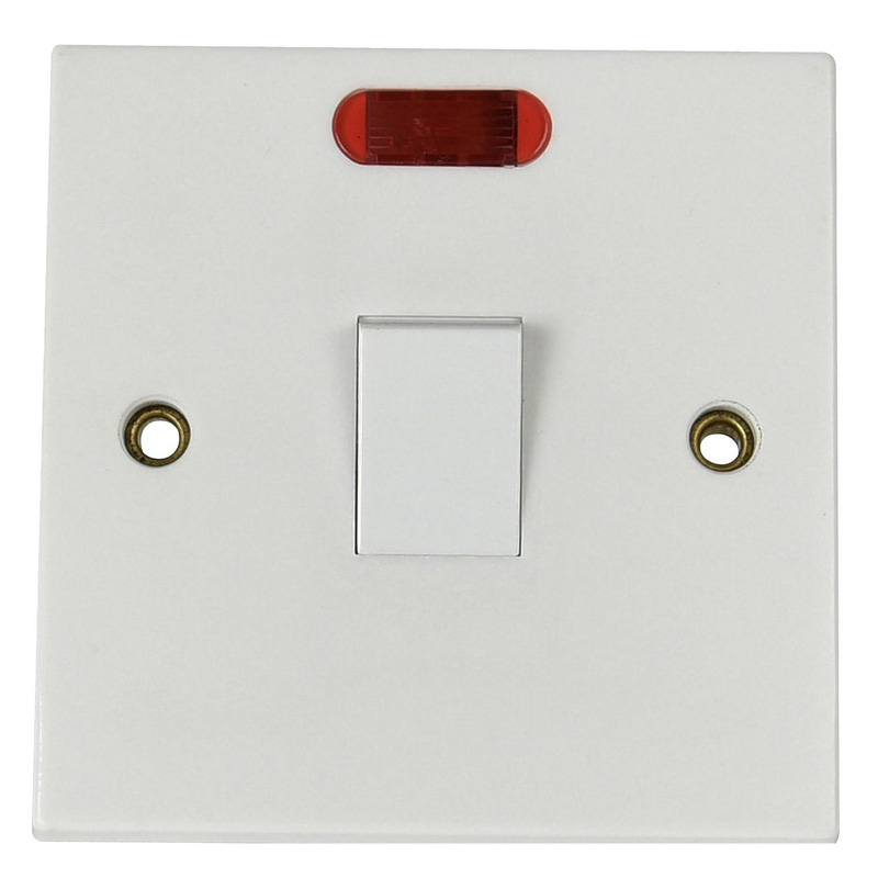 This Made4Trade 20A Double Pole (DP) switch is ideal for isolating fixed appliances such as water heaters or fans. It features a neon indicator that clearly shows you when the power is active. The switch is rated at 20A and operates on a 250V~ power voltage. * 20A Double Pole Switch – ideal for isolating fixed appliances like fans or water heaters * Includes a Neon indicator – clearly shows you when the switch is live * Power Voltage: 250V~ – suitable for standard UK electrical installations * Terminal Capacity: 1 x 2.5mm² ~ 1 x 6.0mm² Cables – handles larger capacity wiring | Made4Trade 20A DP Switch 20A with Neon in White