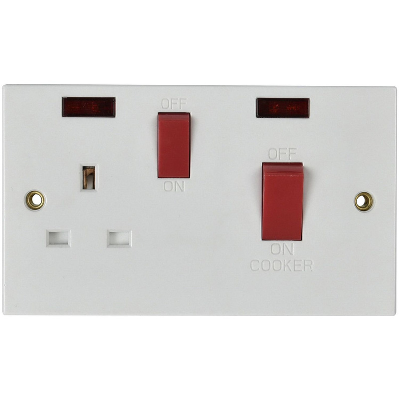 Made4Trade 45A DP Cooker Switch 1 Gang & Switched Socket with Neon in White