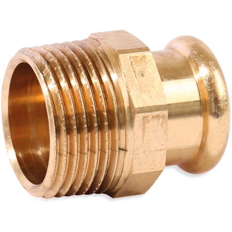 Copper Press Fittings offer a speedy solution for domestic, commercial & industrial applications. The range of M-Profile Copper Press can be used for quick heat-free jointing whilst also creating an aesthetically pleasing, secure and permanent joint. Fittings are available from 15mm to 28mm and follow the 'M' Profile and are therefore compatible with all 'M' Profile tooling. * Speedy Installations * Heat Free Installation * Compatible With BS EN 1057 Copper Tube * EPDM, Leak Before Press O-Ring * Guaranteed For 25 Years * WRAS Approved | Made4Trade Press Fit Male Adaptor 28mm x 1" in Gold | Copper