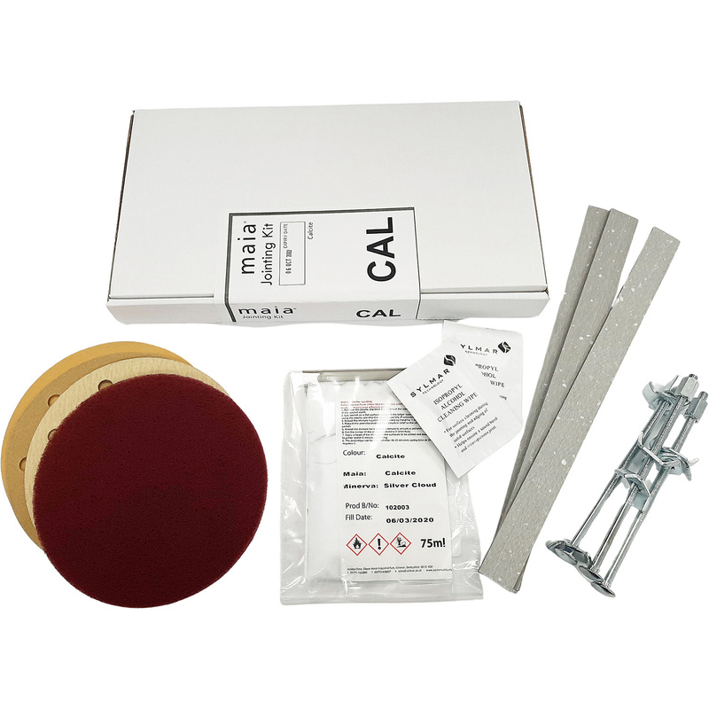 * All materials required for the completion of one maia joint * Provides a seamless and smooth finish * Contains two part adhesive sachet * For Indoor Use * 1x 75ml Adhesive Sachet, 2x Isopropyl Alcohol Wipes, 3x Tongues, 3x Jointing Blocks, Sandpaper (120G, 240g and 320G), Red Abrasive Pad Everything you need for the completion of one Maia worktop joint. The kit includes a 75ml sachet of adhesive with two isopropyl alcohol wipes, three tongues, three jointing bolts, three grades of sandpaper and a red abrasive pad.* Jointing kit for use with Maia Cappuccino worktops* All you need for the completion of one joint* Provides a smooth and seamless finish* Includes 75ml sachet of two-part adhesive* Three grades of sandpaper - 120, 240 and 320 grit* Alcohol wipes, jointing bolts, tongues and abrasive pad also included | Maia Worktop Joint Kit in Cappuccino | Composite